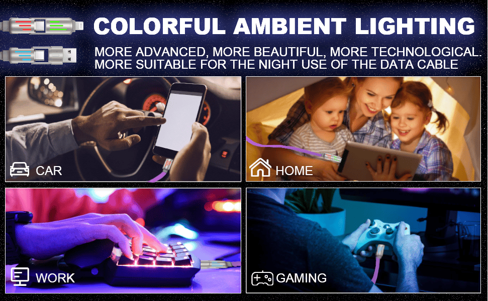 ✅ Premium Vibe:Glowing design turns the cable into a trendy decor for desk/car, practical & eye - catching