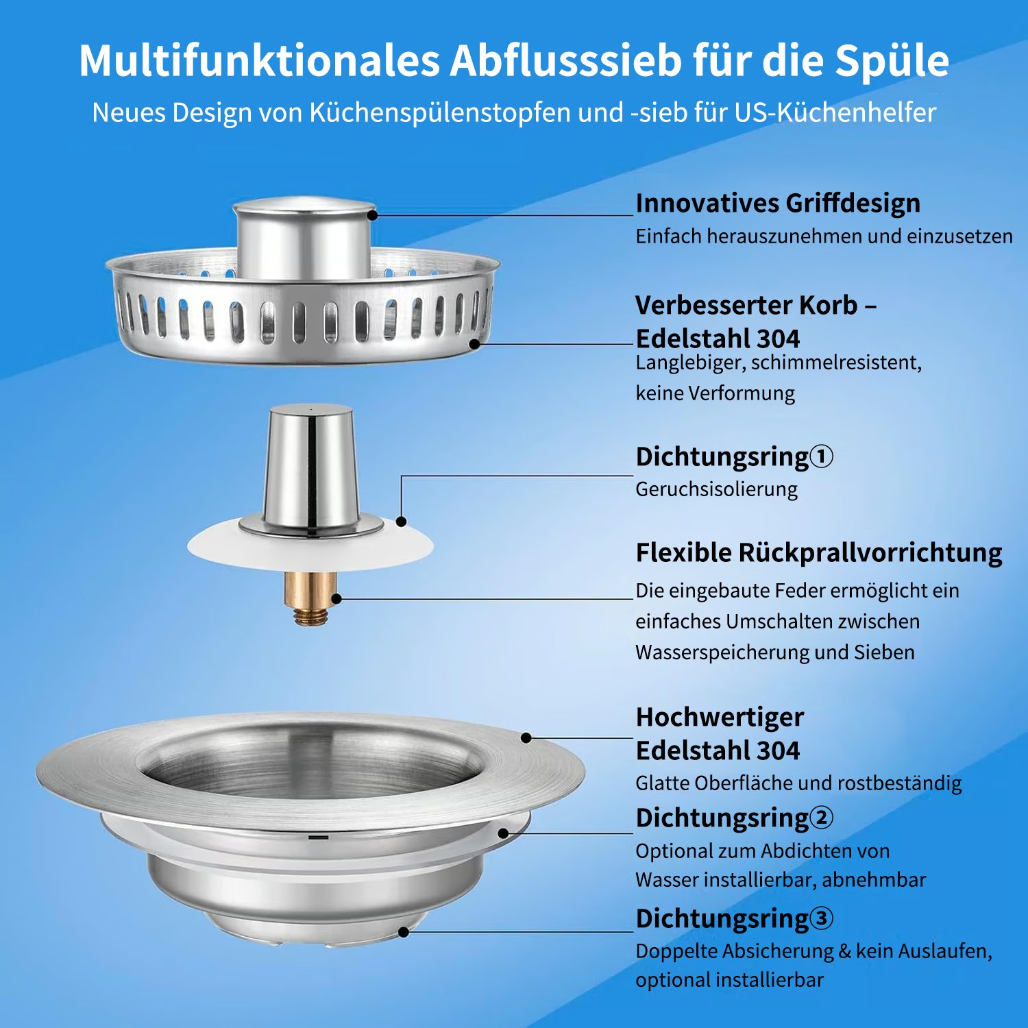 🎁Als Geschenk für Ihre Familie oder Freunde ist dieses 3-in-1-Abflusssieb für die Küchenspüle in begrenzter Stückzahl perfekt!
