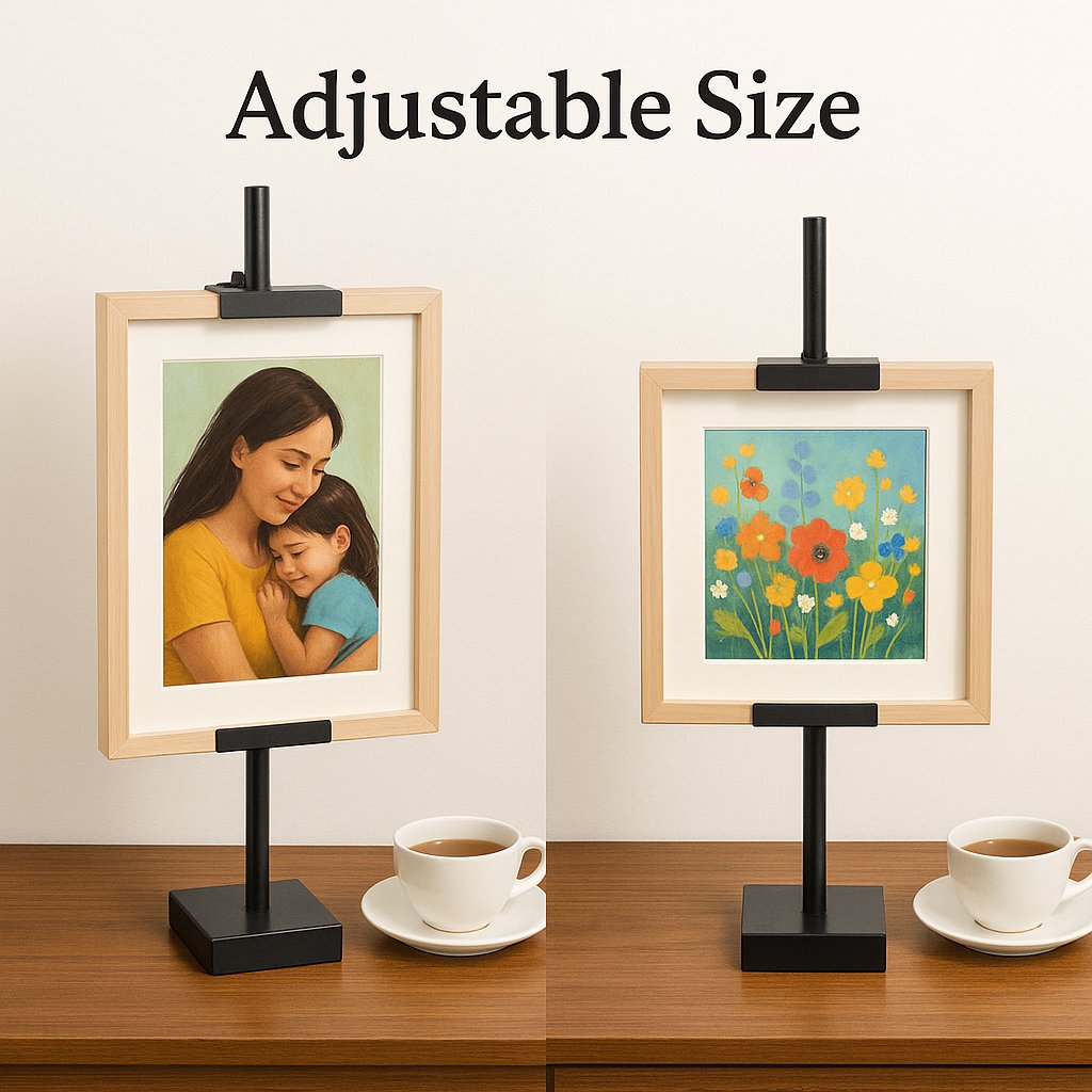 Designed to accommodate 90% of standard frames with thickness ranging from 1/4" to 1-3/8". This versatile solution eliminates the need for multiple stands, working perfectly with everything from slim modern frames to substantial wooden ones.