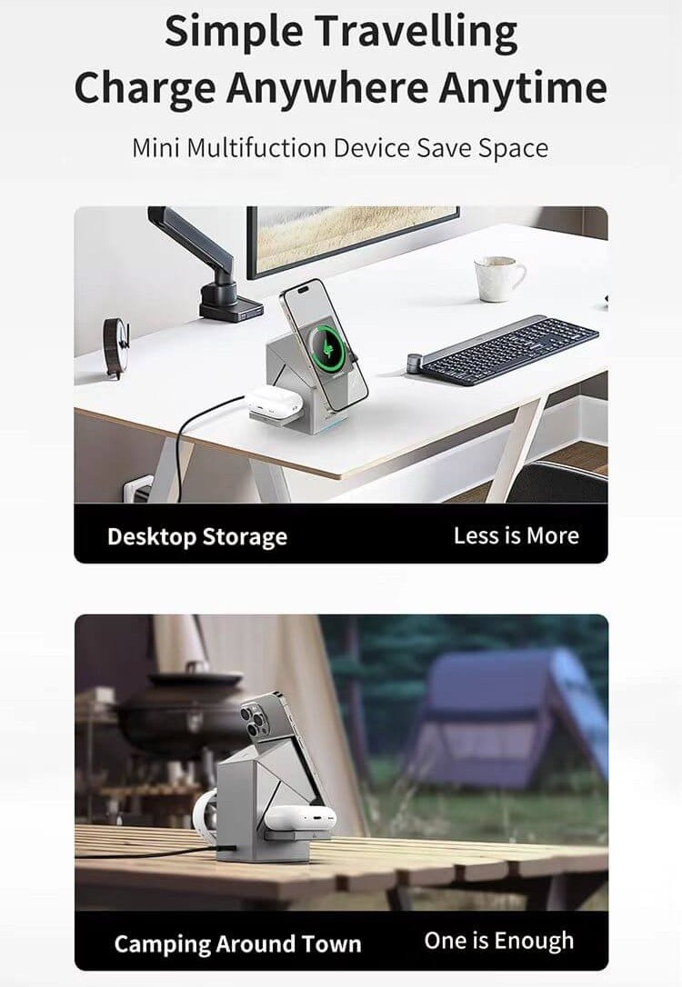 Perfect for Apple users seeking a streamlined charging solution, this 3-in-1 station also ideal for travelers, students, and tech enthusiasts who value compact design and MagSafe convenience.